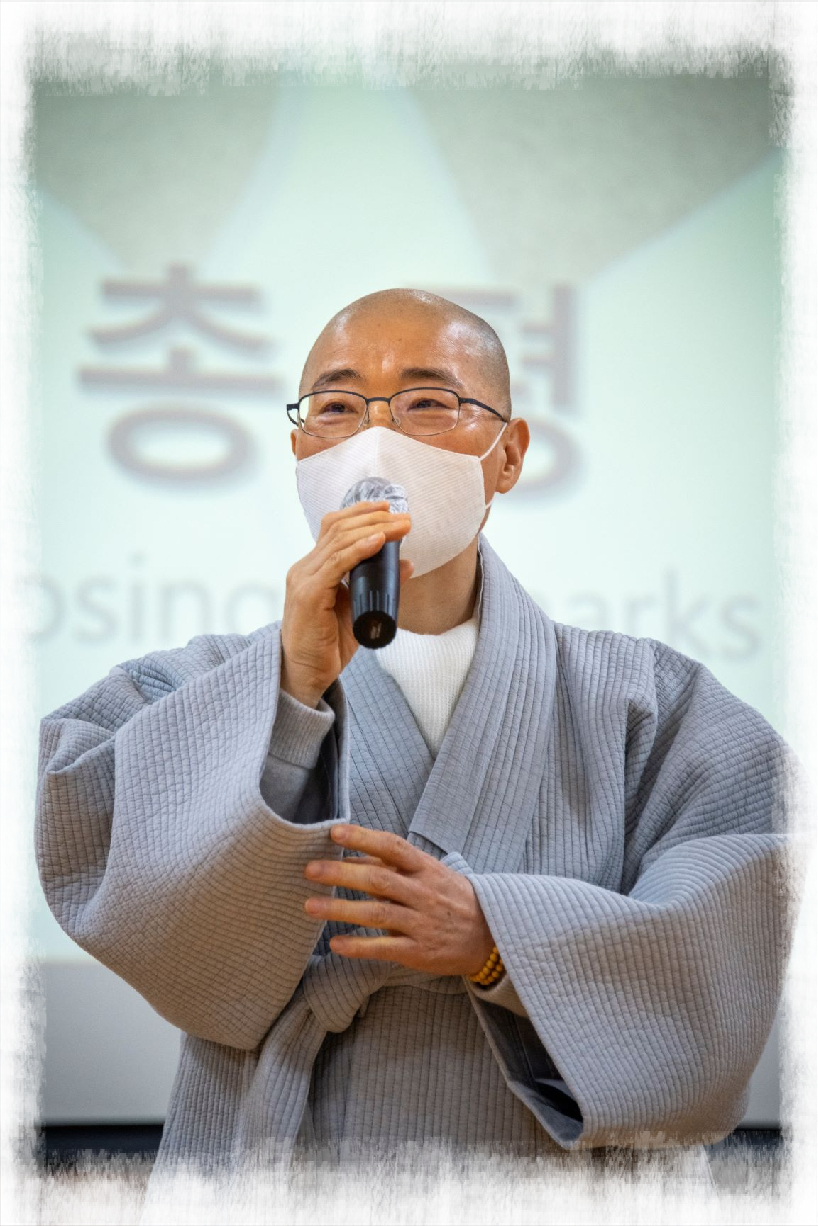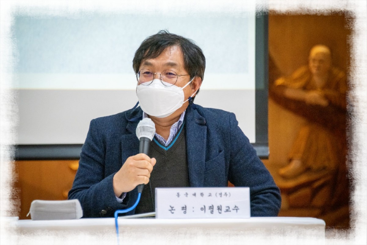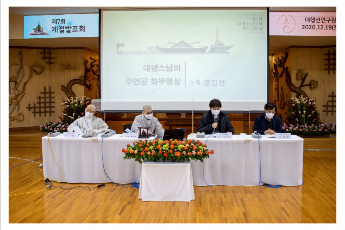 혜선 스님(좌장, 대행선연구원 연구실장) : “너무나 열띤 발표에 감사드립니다. 대행선에 대해서 면밀히 살뜰히 살펴주셨어요. 다음은 문진건 교수님께서 논평해주시겠습니다.”