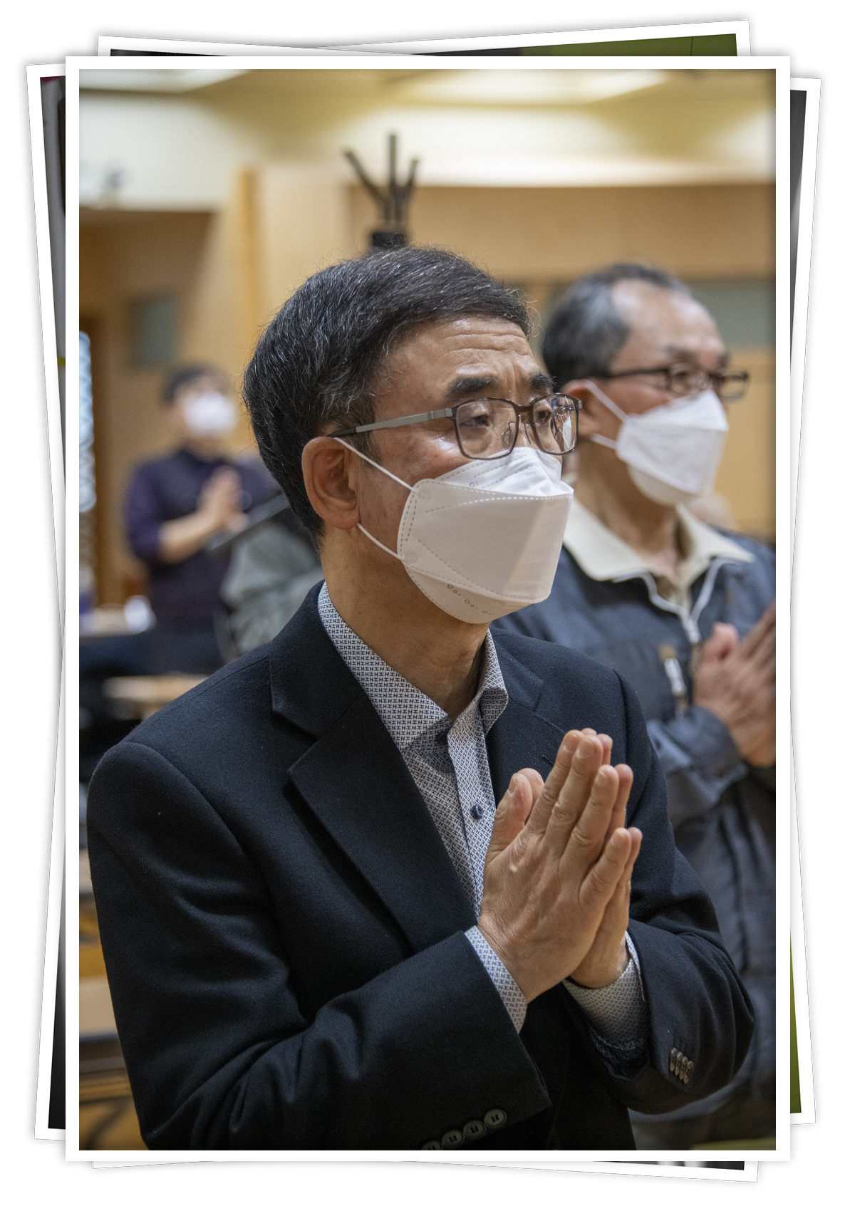 집전하시는 혜안스님의 목탁소리에 맞추어 반야심경을 한마음으로 봉독하며 제8회 계절발표회의 원만한 회향을 발원합니다.