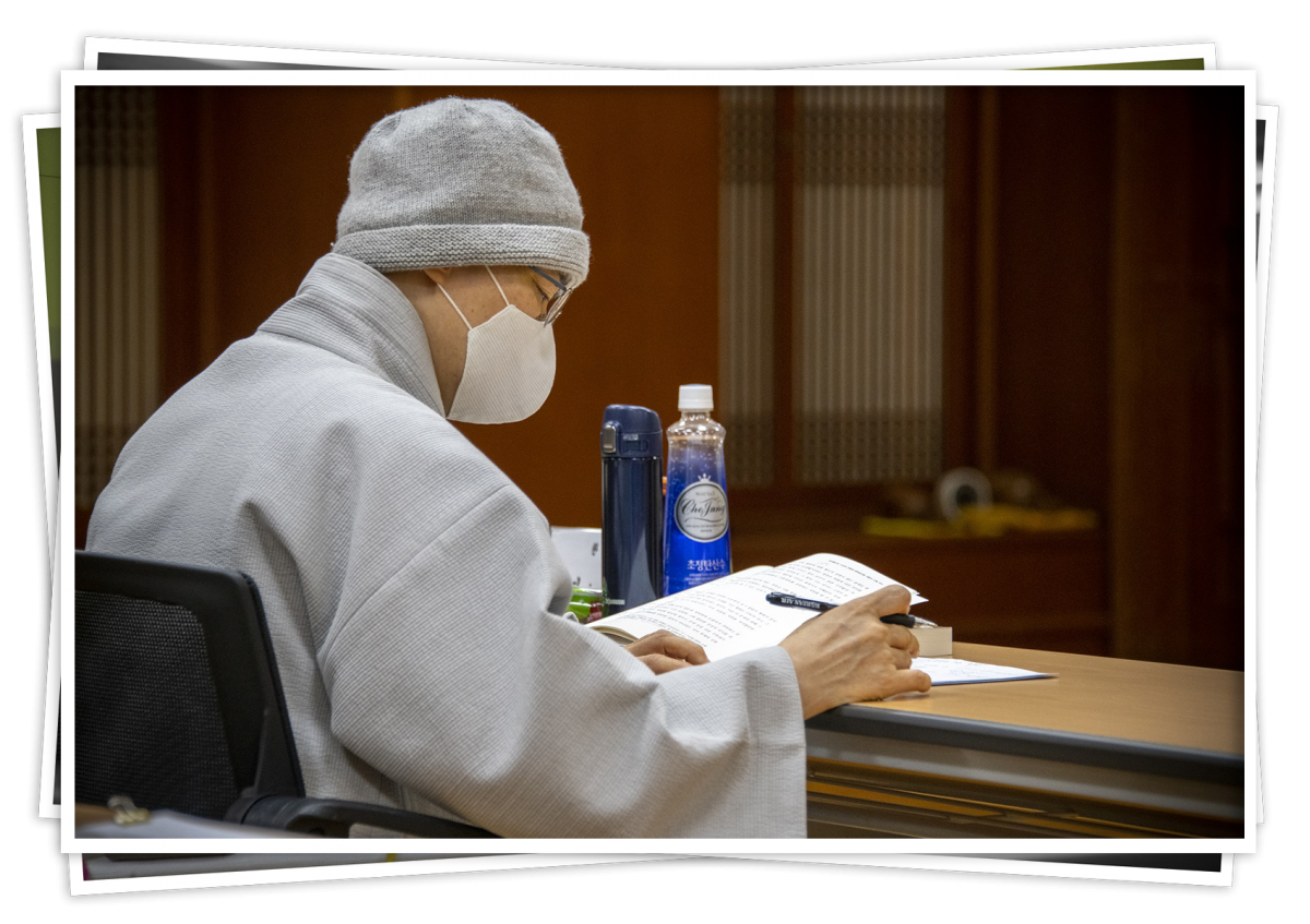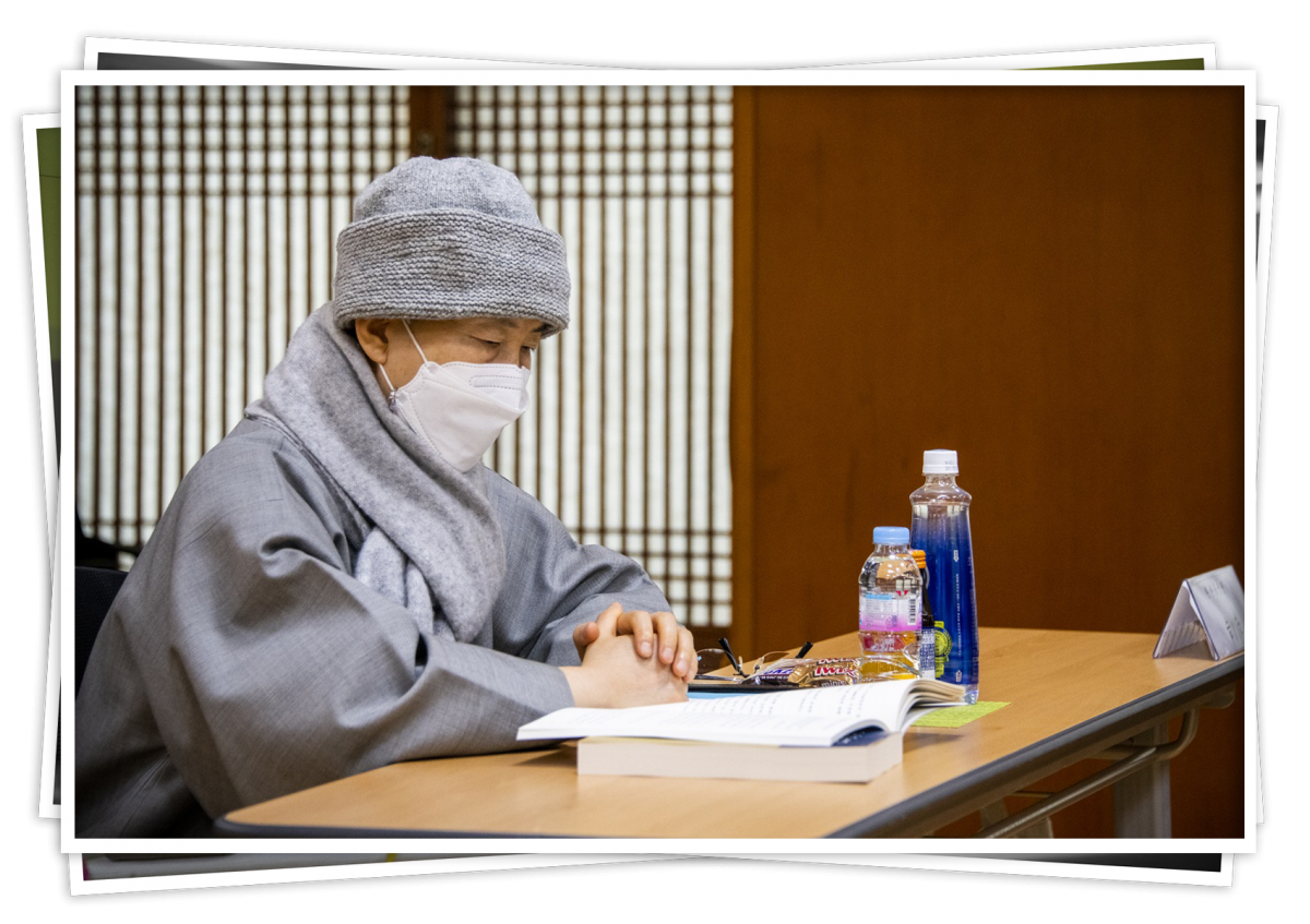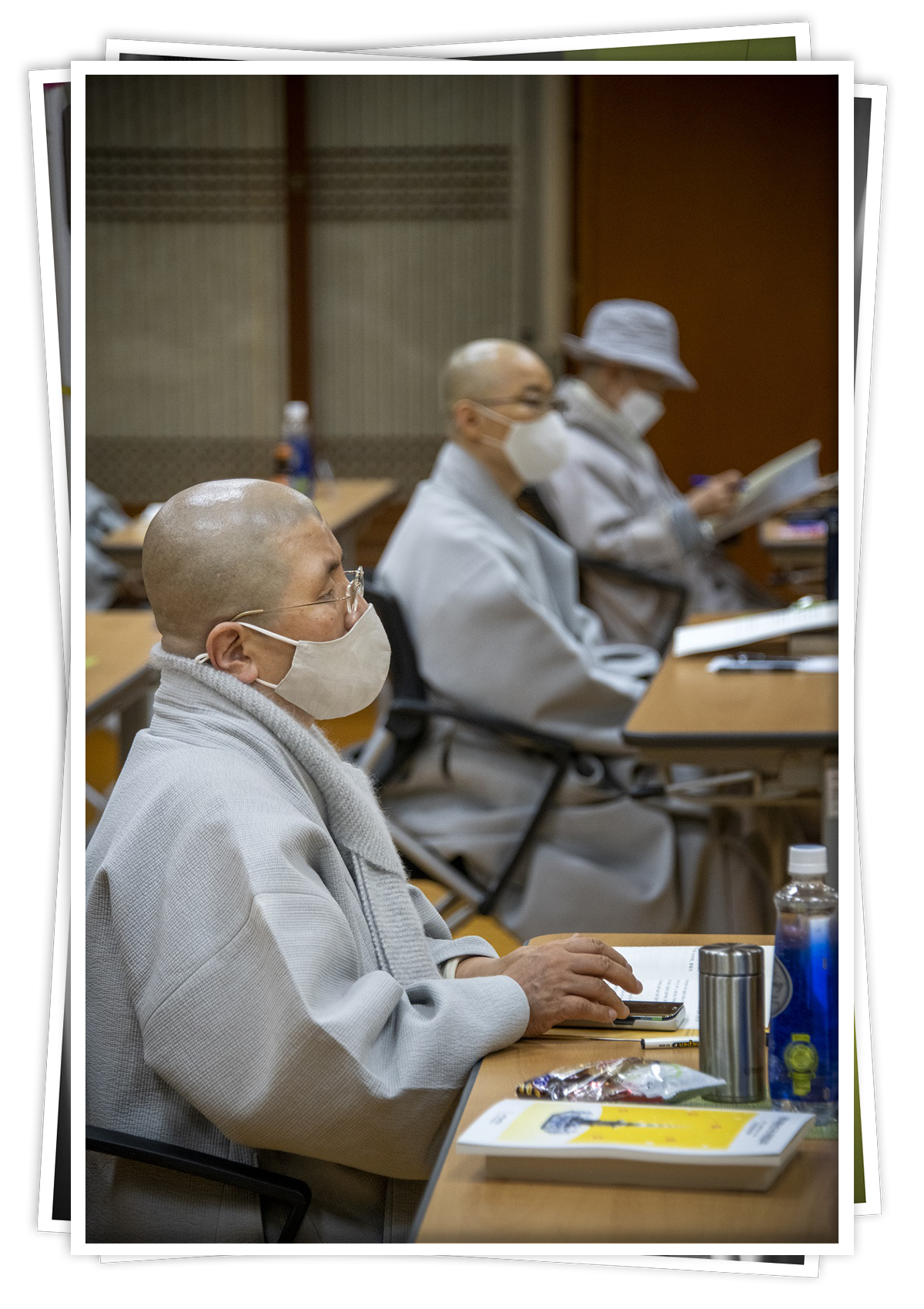 발표회 시작부터 마지막까지, 발표회 내내 자리를 든든히 지켜주셨던 이사장 스님, 주지스님 한 틈도 농치지 않고 경청하시는 모습에 저절로 감사의 두 손이 모아지고, 스님의 에너지가 힘이 되어 우리의 가슴이 따뜻해집니다.