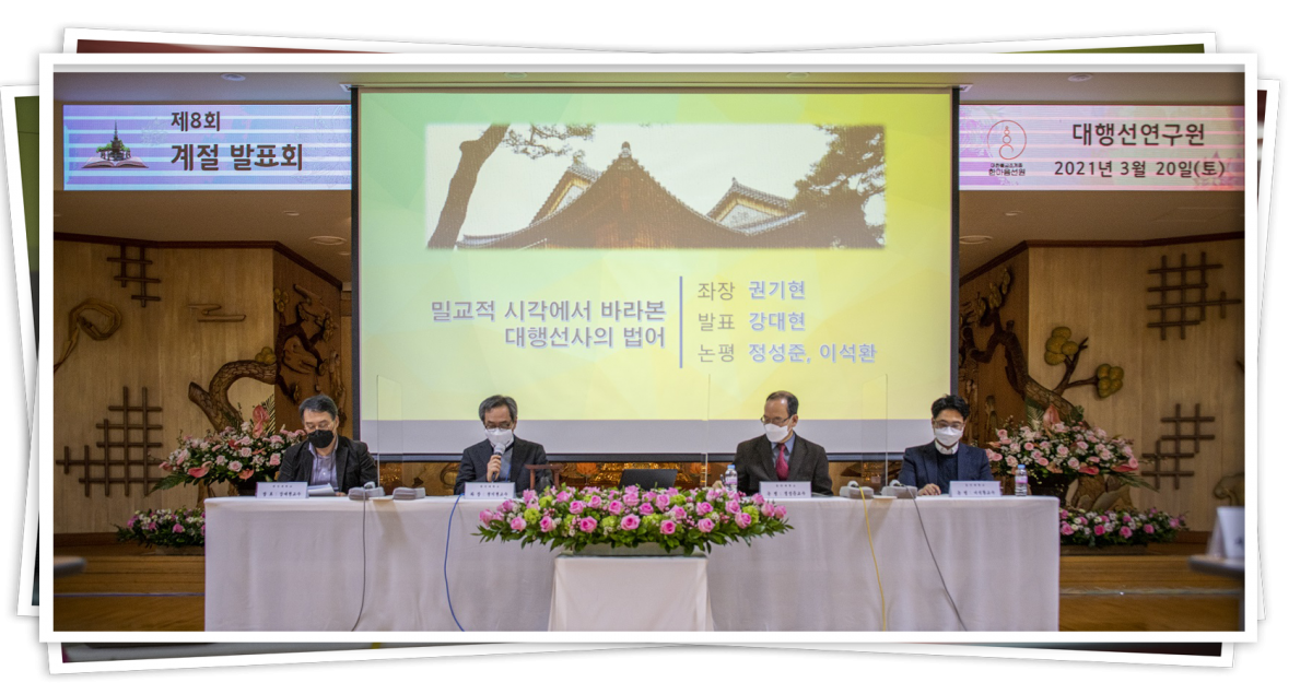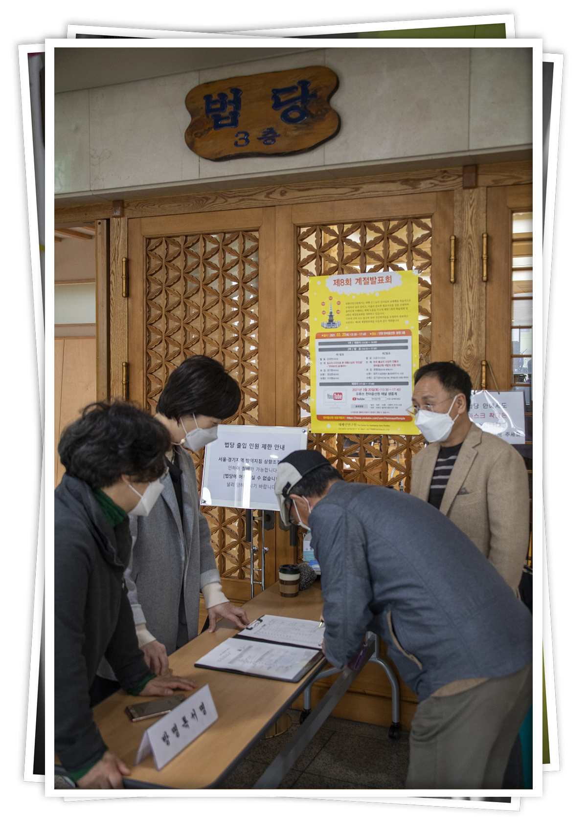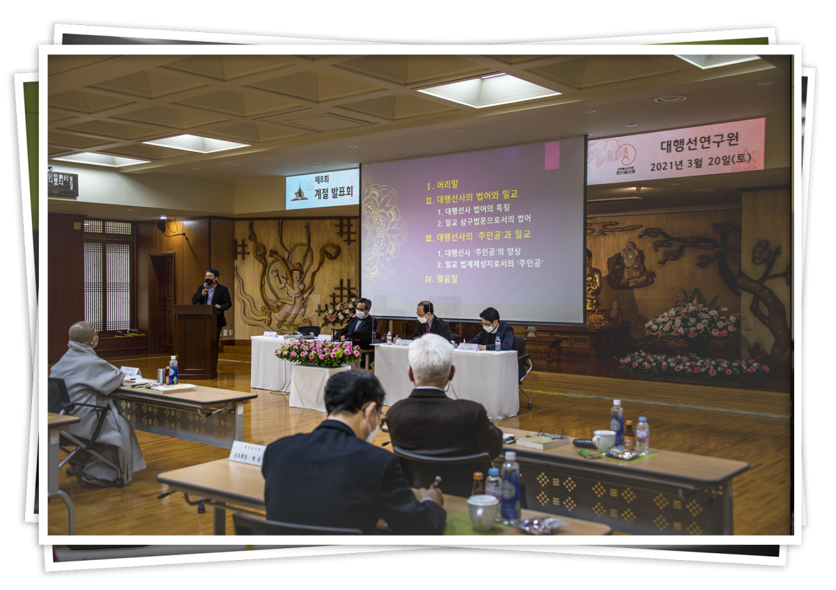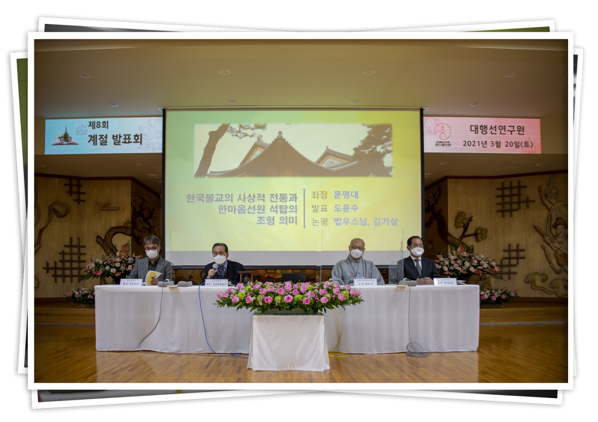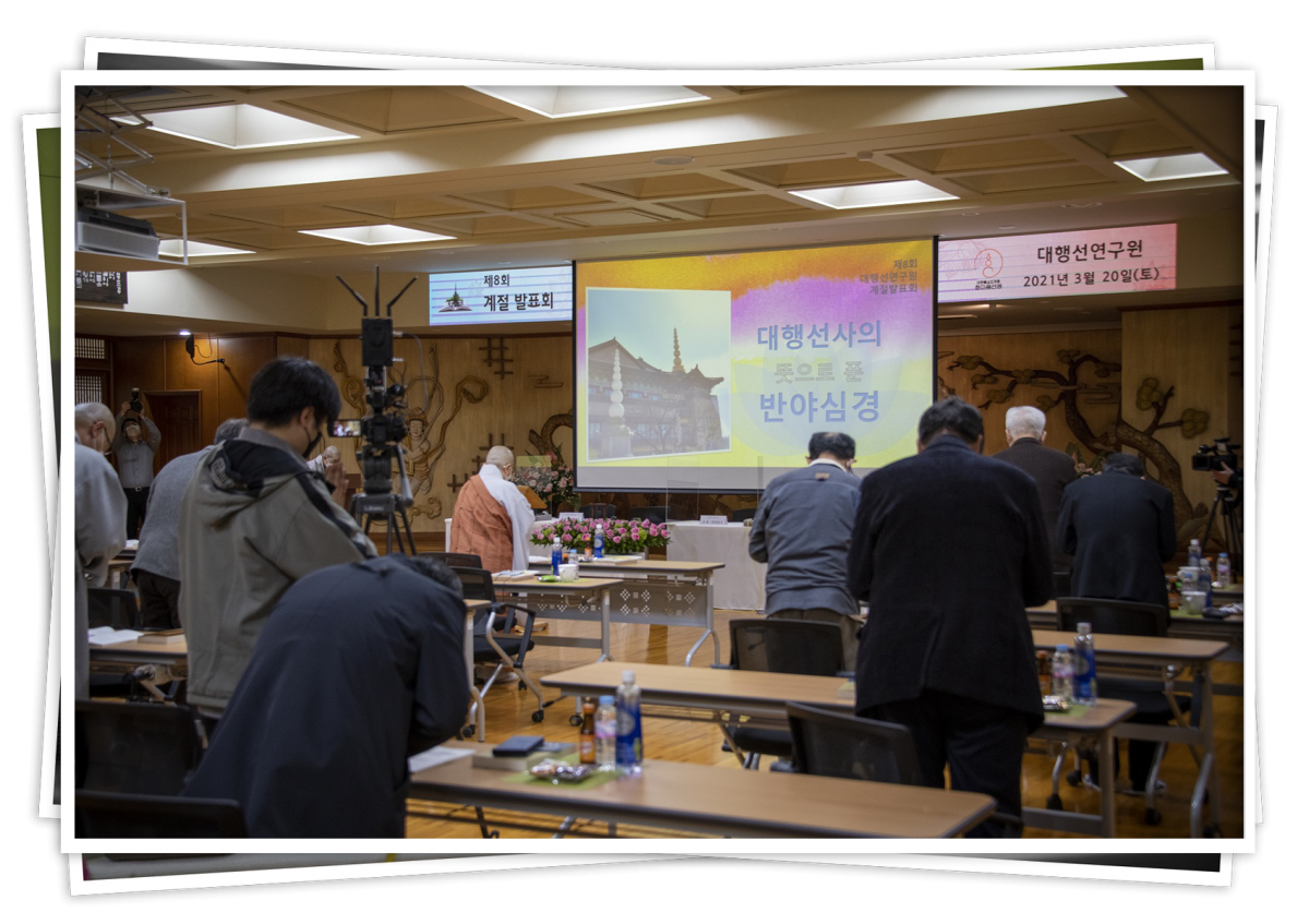 대행선연구원이 주최하는 제8회 계절발표회가 안양 한마음선원 본원 3층 에서 개최되었습니다. 사회적 거리두기 지침에 따라 현장에는 40명밖에 참여하지 못했지만, 유튜브 채널을 통해 많은 분들이 온라인으로 참여해 주셨습니다.