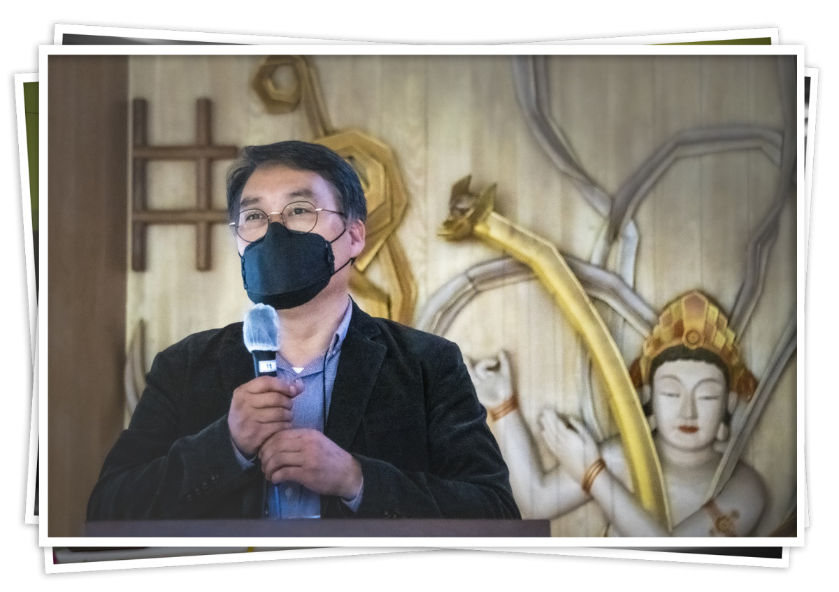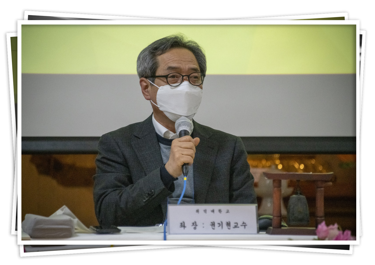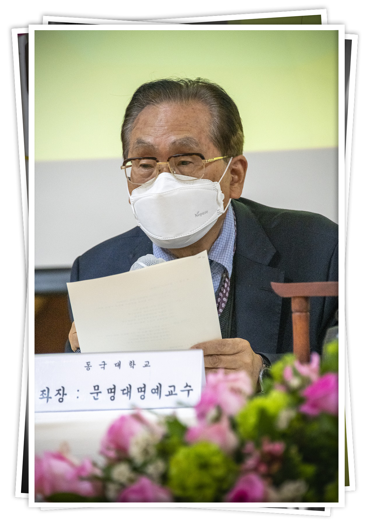 “제1발표는 현재 위덕대학교 불교문화학부 교수이시고, 불교문화연구소 원장님이신 권기현 교수님께서 좌장을 맡아 주시고, 제2발표는 현재 동국대 명예교수이시자 사단법인 한국미술사연구소 소장님이신 문명대 명예교수님께서 좌장을 맡아주시겠습니다. 오늘 이 자리에 오신 걸 대단히 환영합니다.”
